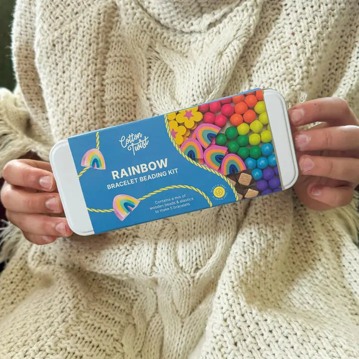 • Recommended for ages 3+ • Plastic free • Promotes fine motor skills • Perfect for till point add-ons • All materials provided • Ideal for party favours & stocking fillers • UKCA/UKNI/CE tested & FSC certified Introducing our new format beading kits! Our bestselling beading kits, now in a reusable gift tin! Containing enough beads to make 5 bracelets, a selection of rainbow, flower, geometric & spherical beads await. The elastic comes with metal ends to aid the beading process for young children. In a bid to banish plastic tat from our homes, all Cotton Twist products are lovingly made by hand and all components are as good as we can possibly make them.